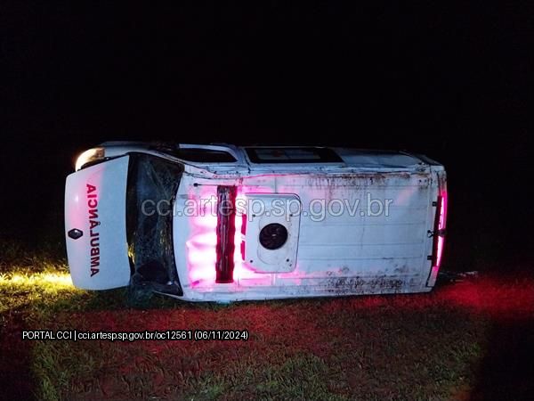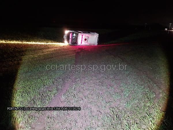 Uma ambulância capotou na Rodovia Anhanguera (SP-330), em Santa Rita do Passa Quatro. O acidente ocorreu no sentido interior, na altura do km 249, na última madrugada, por volta das 4h.