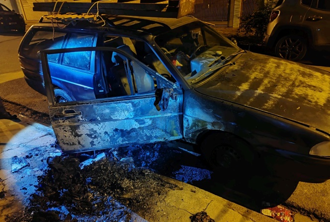 Ao chegar ao local, a equipe constatou que o automóvel, que estava estacionado em frente a uma residência, apresentava sinais de queimadura, além de roupas parcialmente queimadas no interior e ao redor do carro.