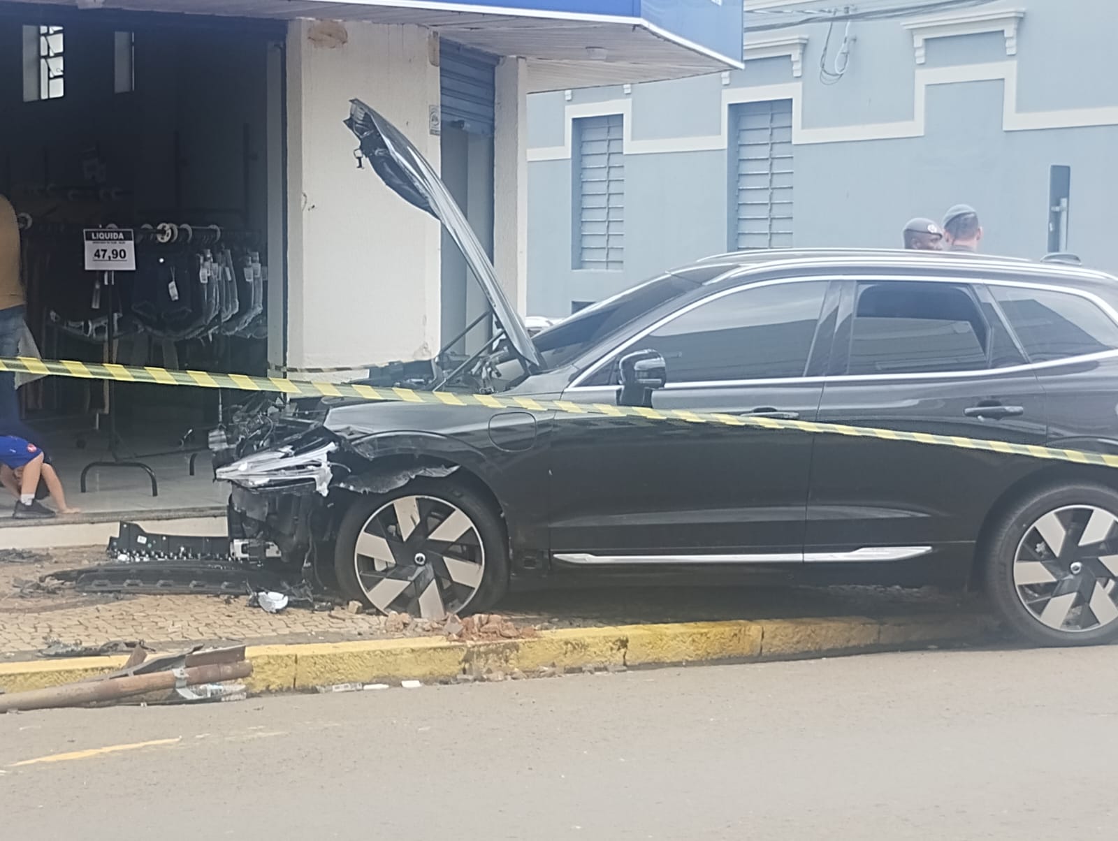 Segundo informações apuradas no local pelo jornal “O Movimento”, após a colisão e com o impacto, um dos veículos invadiu a calçada de um estabelecimento comercial, onde funciona uma loja.