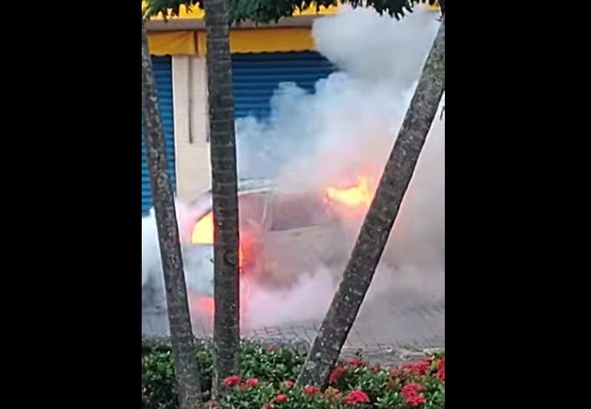 Na manhã desta quinta-feira (20), um carro pegou fogo na Rua Duque de Caxias com a Rua José Bonifácio, no Centro de Pirassununga SP.