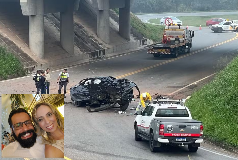 Casal morre após carro bater em grade e despencar de ribanceira em rodovia da região
