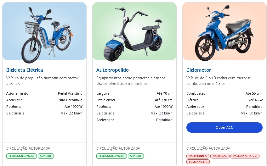 Já o ciclomotor é definido como um veículo de duas ou três rodas, com motor de até 50 cilindradas ou potência elétrica de até 4 kW, e velocidade máxima de até 50 km/h. Para circular, é obrigatório o registro, licenciamento, emplacamento e habilitação. A circulação em ciclovias é proibida e caracteriza infração gravíssima, conforme o Código de Trânsito Brasileiro.