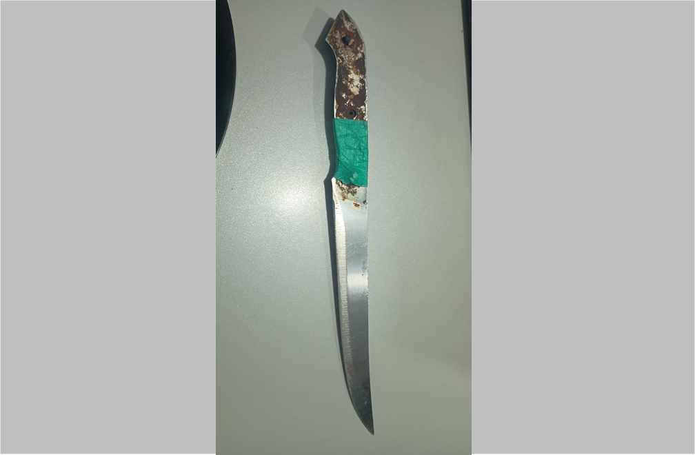 Durante a abordagem, os policiais encontraram uma faca escondida na cintura do suspeito. Ele foi preso em flagrante por lesão corporal e ameaça, com base na Lei Maria da Penha. A vítima recebeu atendimento médico e apresentava ferimento no lábio e dores na cabeça.