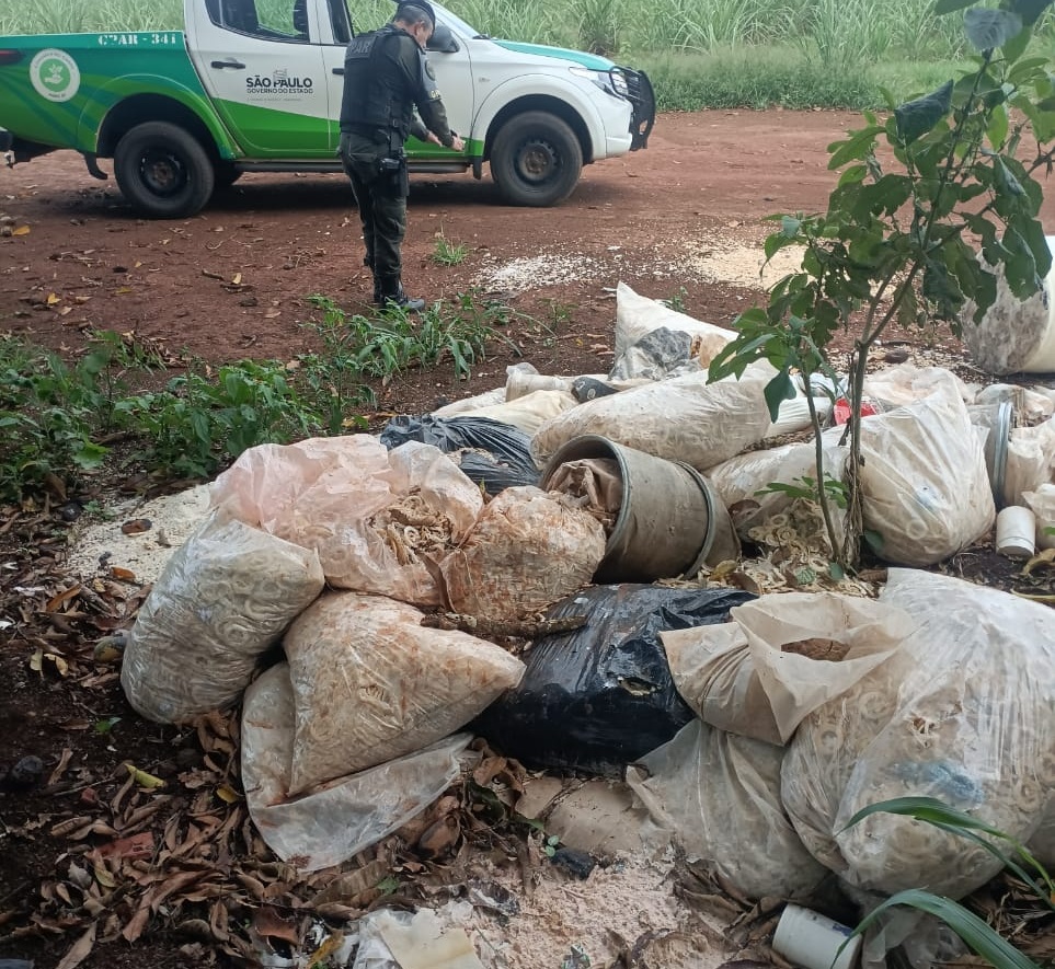 Material com produtos químicos foi localizado durante patrulhamento ambiental. Foto: GPAR