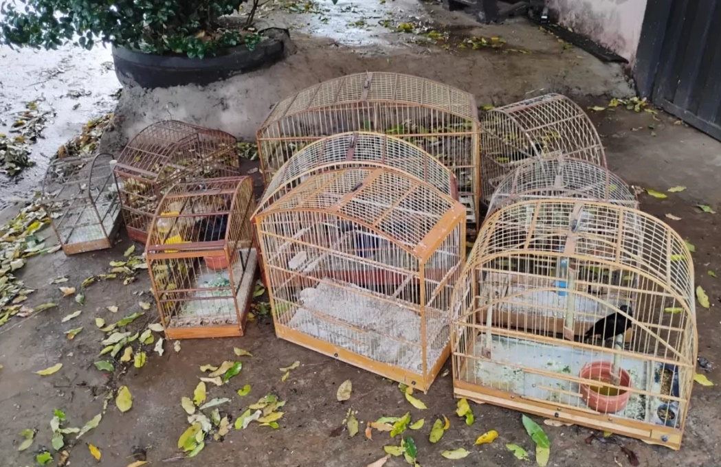 O flagrante ocorreu nesta quinta-feira (30), após denúncia anônima. Durante a fiscalização, agentes constataram diversas aves mantidas irregularmente, incluindo trinca-ferro, sabiá-uma, maritaca, pássaro-preto e coleiro.