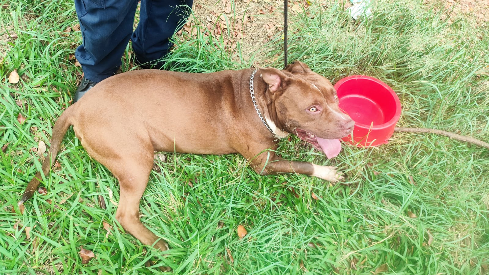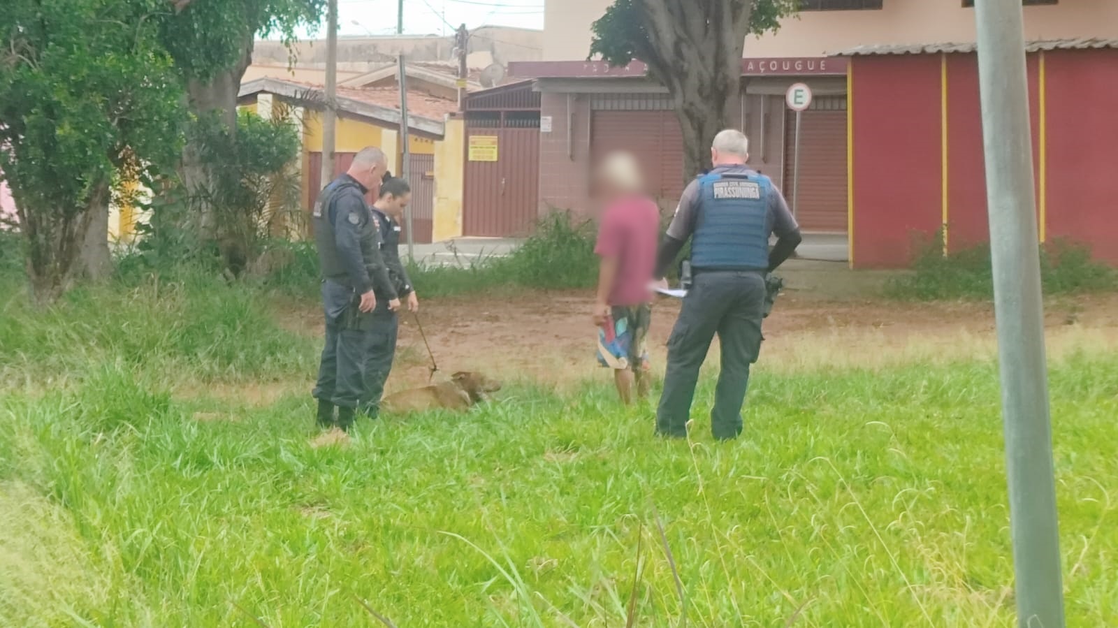 Segundo a ocorrência policial, ao chegarem ao local, os agentes encontraram o cachorro da raça pitbull caído no chão, sendo puxado pela coleira e incapaz de ficar em pé. Um veterinário foi acionado e constatou que o cão apresentava sinais de maus-tratos, incluindo desidratação, hipertermia, exaustão e ferimentos na pata.