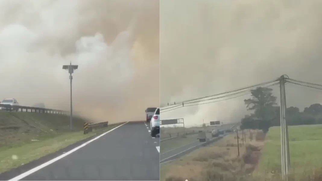 Um Incêndio com cortina de fumaça foi registrada no começo da tarde desta segunda-feira (1), na rodovia Anhanguera, quilômetro 247, em Santa Rita do Passa Quatro e assustou quem transitava pelo local.
