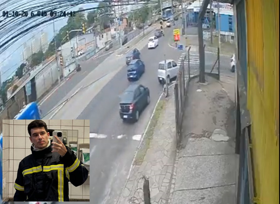 Imagens de câmeras de segurança registraram o momento em que o motociclista trafegava em alta velocidade, avançou o sinal vermelho na avenida Sertório e atravessou a avenida Baltazar enquanto outros veículos estavam em circulação. Em seguida, ele perdeu o controle da motocicleta e colidiu contra um muro.