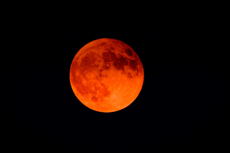 O eclipse lunar acontece quando a Terra está posicionada entre o Sol e a Lua e bloqueia total ou parcialmente a chegada de luz até a superfície lunar. Esse sistema cria o efeito de “Lua de Sangue“, que é quando o astro aparece avermelhado no céu.