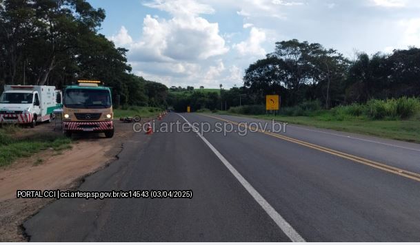 Um grave acidente envolvendo uma motocicleta e um caminhão guincho ocorreu na Rodovia Hélio Moreira Sallesno (SP-215), em Descalvado, SP, na tarde desta quinta-feira (03).O acidente aconteceu por volta de 15h10, no km 108, e as causas ainda são desconhecidas.