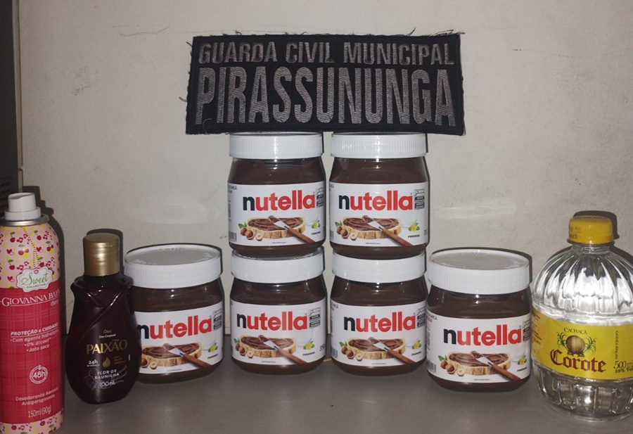 Com ela, os agentes encontraram seis potes de creme de avelã, uma bebida alcoólica tipo “corote”, um desodorante aerossol e um óleo corporal, este último localizado na cintura durante a busca pessoal. A mulher admitiu ter pego os produtos.