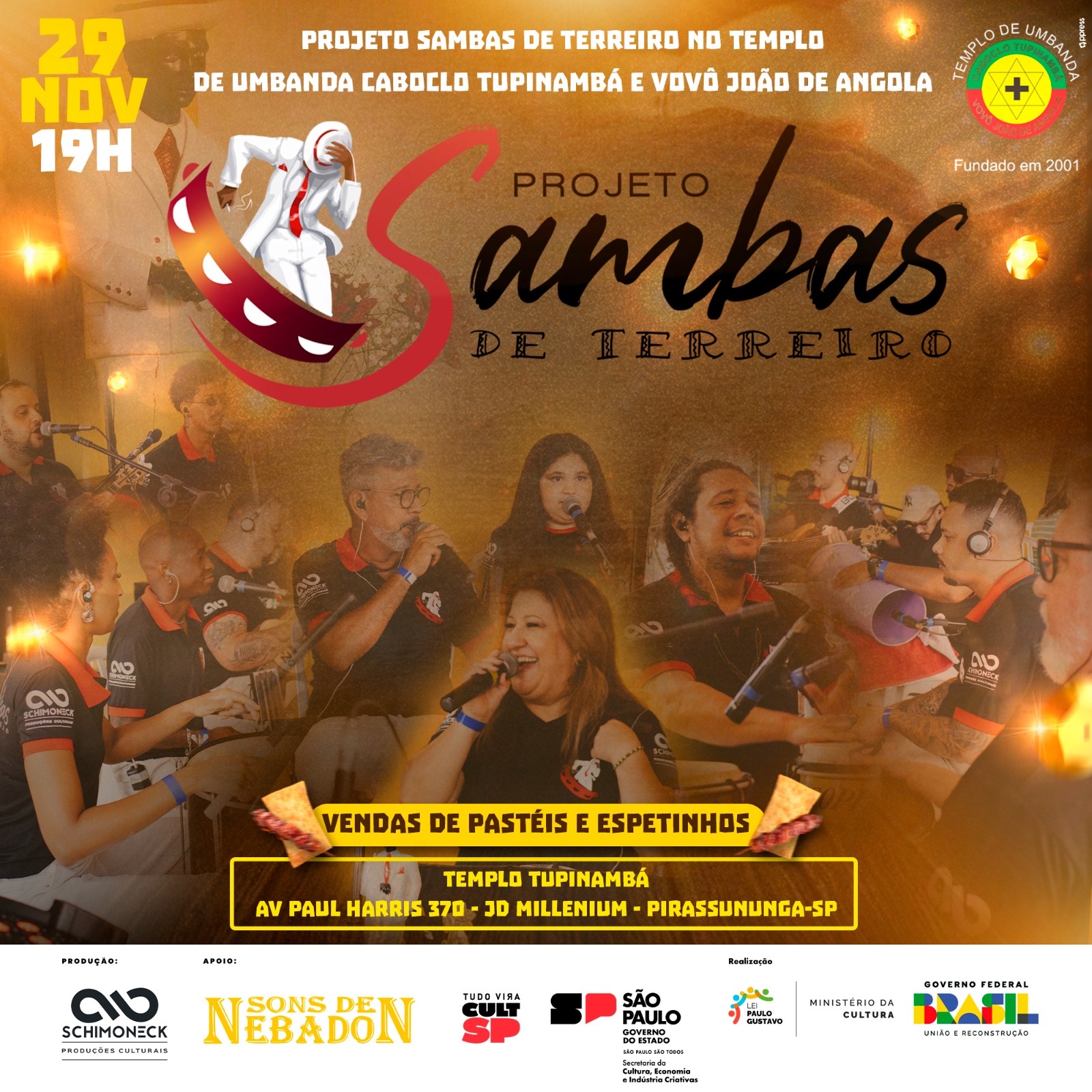 O show será dia 29 Novembro (sex) às 19 hrs no Templo de Umbanda Caboclo Tupinambá – Vovô João de Angola.