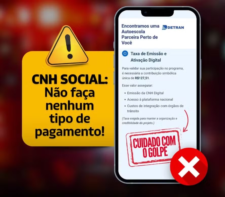 O Departamento Estadual de Trânsito de São `Paulo (Detran-SP) emitiu nesta semana um alerta à população sobre um novo golpe que está circulando pelas redes sociais e aplicativos de mensagens, envolvendo o programa CNH Social — iniciativa real em alguns estados que oferece gratuidade na obtenção da Carteira Nacional de Habilitação para pessoas de baixa renda.