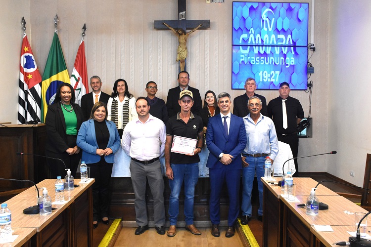 A solenidade, presidida pelo vereador Wallace Bruno, contou com a presença do secretário municipal de Meio Ambiente, Leonardo Ventura; do presidente do Sindicato Rural de Pirassununga, Luiz Carlos Gomes da Cruz; e da secretária-geral da OAB, Kenea Karoline Tobias.