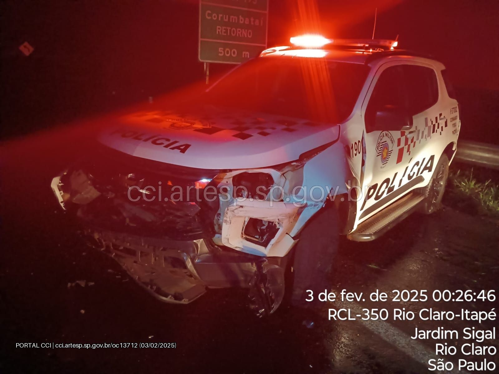 Uma viatura da Polícia Militar bateu na Rodovia Washington Luís (SP-310), na madrugada desta segunda-feira (3) em Corumbatai. O choque ocorreu no km 192 no sentido interior.