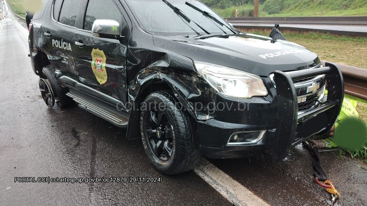 Viatura da Polícia Civil se envolve em acidente na Rodovia Anhanguera