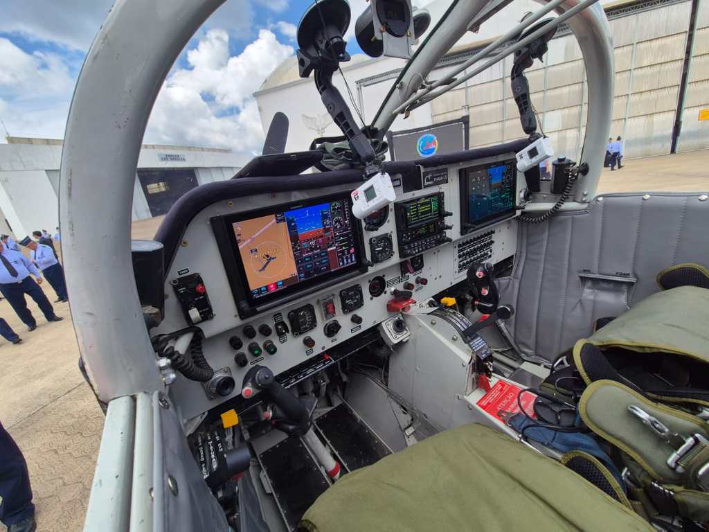 Uma das principais novidades é o painel do tipo Glass Cockpit, equipado com aviônica Garmin e GPS integrado — tecnologia semelhante à utilizada nas escolas de aviação civil mais avançadas do mundo.