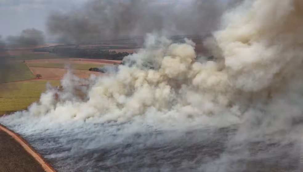 Um incêndio de grandes proporções atingiu uma área de canavial e de mata no Jardim Angélica, em Leme, na manhã desta segunda-feira (30). De acordo com informações da Defesa Civil, o fogo começou por volta de 10h30 e se alastrou rapidamente.