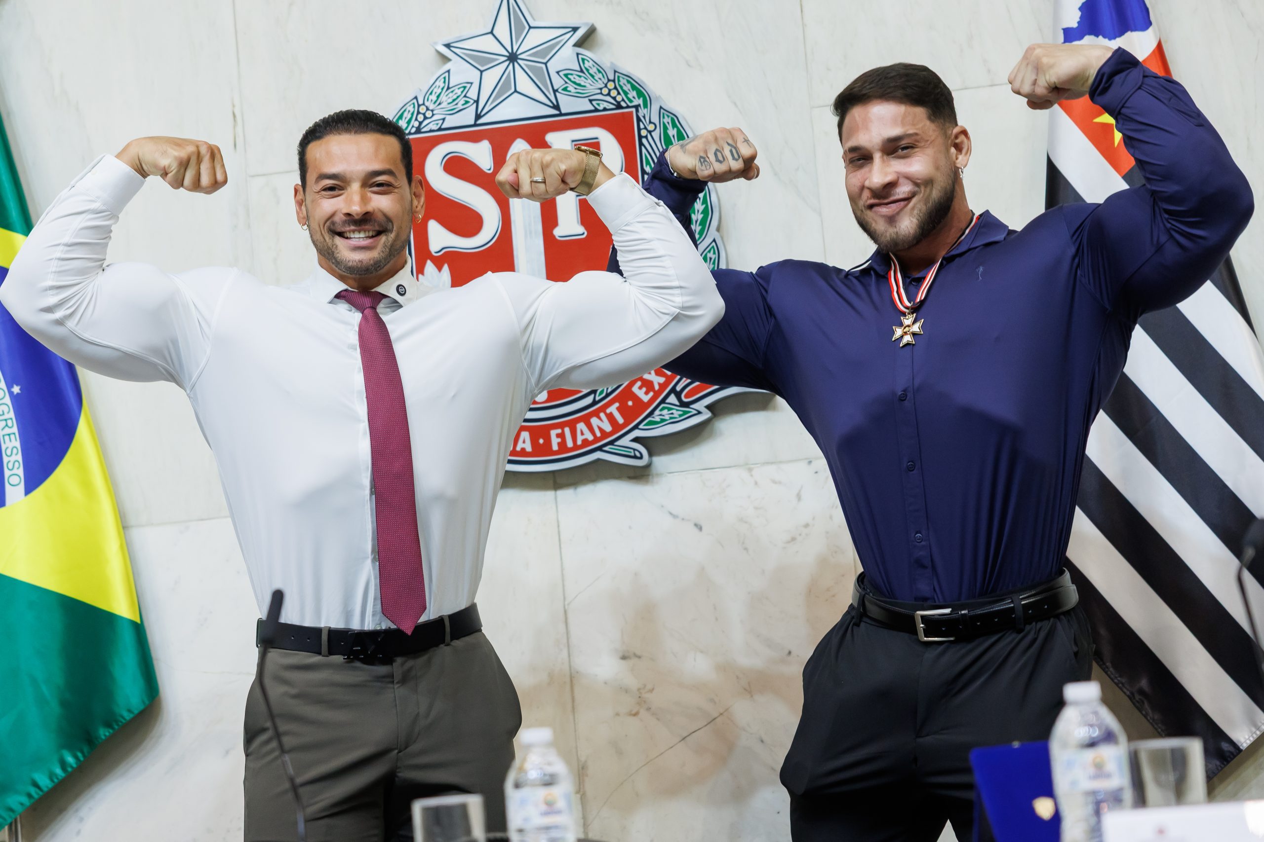 A Assembleia Legislativa do Estado de São Paulo (ALESP) realizou, na última semana (26/03), uma Sessão Solene para homenagear o atleta Ramon Rocha Queiroz, conhecido mundialmente como Ramon Dino, com o Colar de Honra ao Mérito. A entrega foi conduzida pelo deputado estadual Felipe Franco, que destacou o impacto do fisiculturista dentro e fora dos palcos.