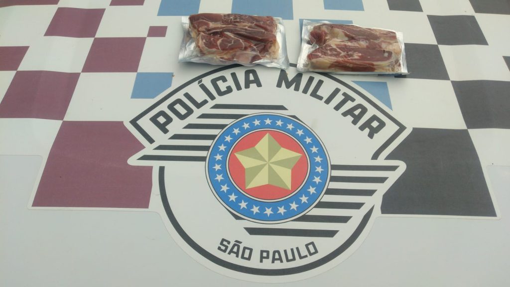 Segundo a Polícia Militar, a equipe realizava patrulhamento quando foi acionada após denúncia de que um indivíduo havia furtado peças de carne em um supermercado e tentava sair do local sem efetuar o pagamento.